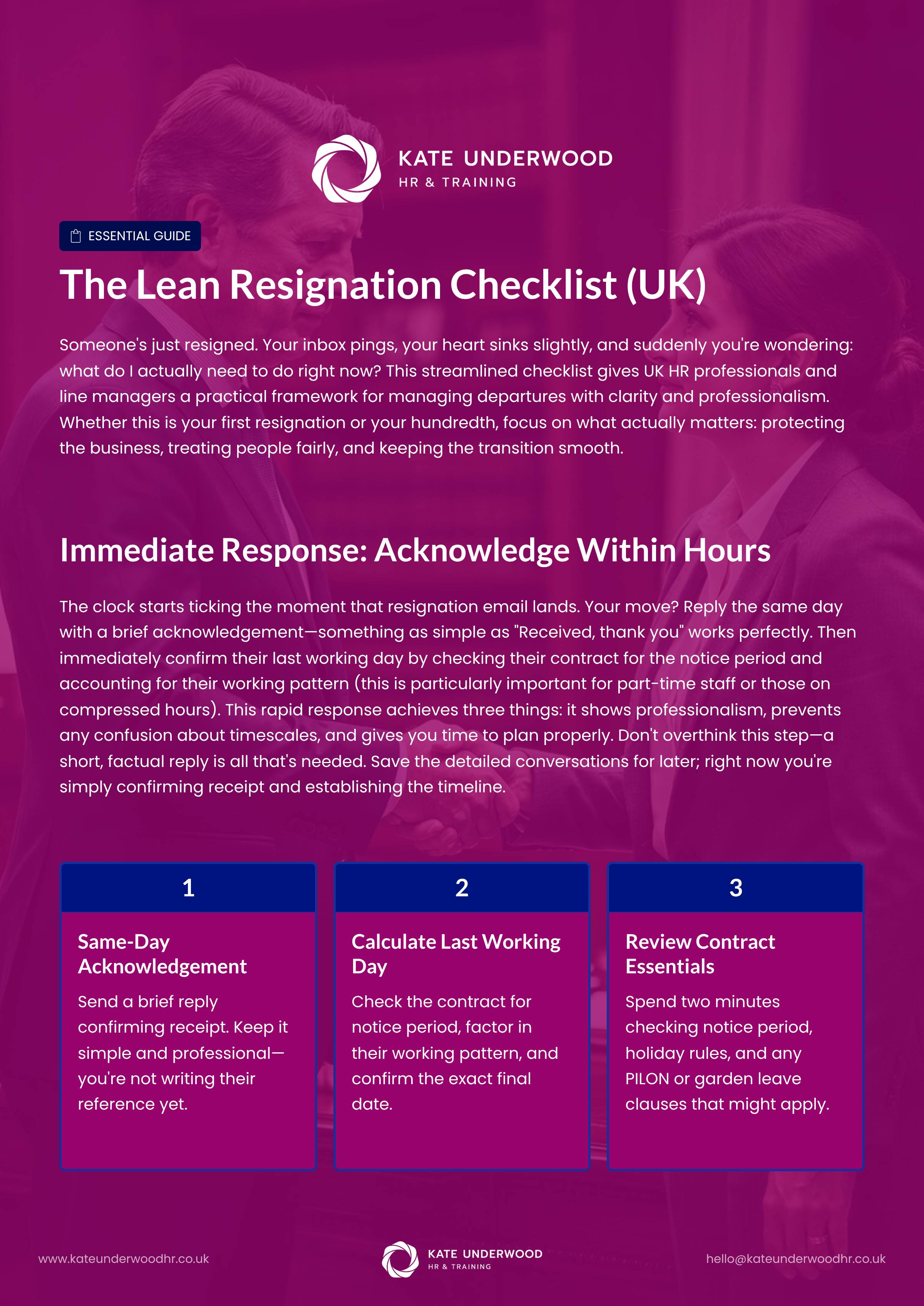 This checklist walks you through the essentials: confirm the last day, check the contract basics, sort handover, lock down kit and access, and keep the team comms neutral. Plus you get two copy/paste emails that save you loads of time.